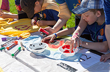 Beim Basteln können sich die Kinder kreativ austoben. Jeden Tag wird etwas Neues hergestellt, ob geschnitten, geklebt, gehämmert oder einfach nur angemalt.